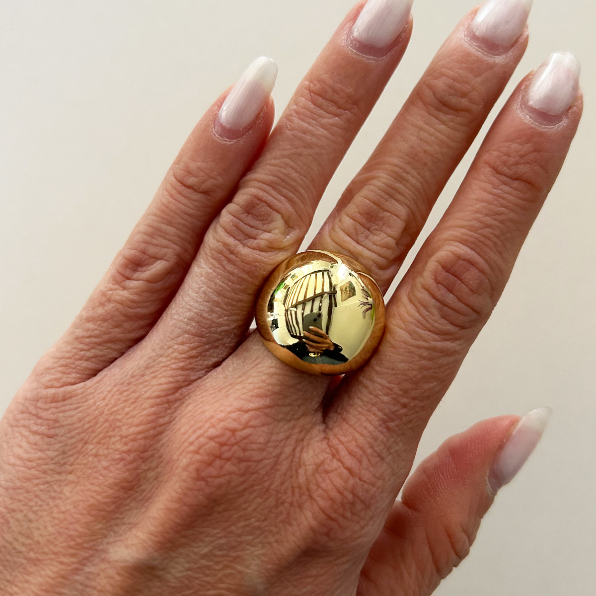 ANELLO A CUPOLA, BOMBATO, PLACCATO ORO 18K. REGOLABILE.