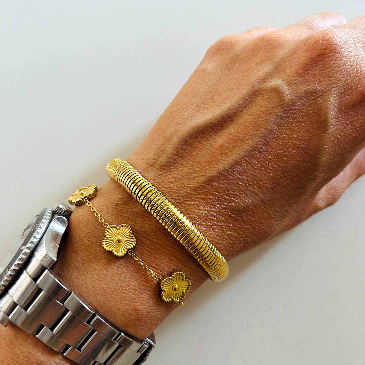 BRACCIALE A MOLLA IN ACCIAIO INOSSIDABILE 304. PLACCATO ORO 18K.