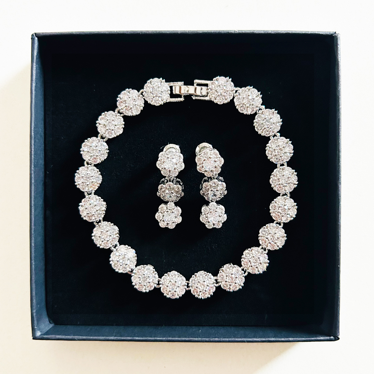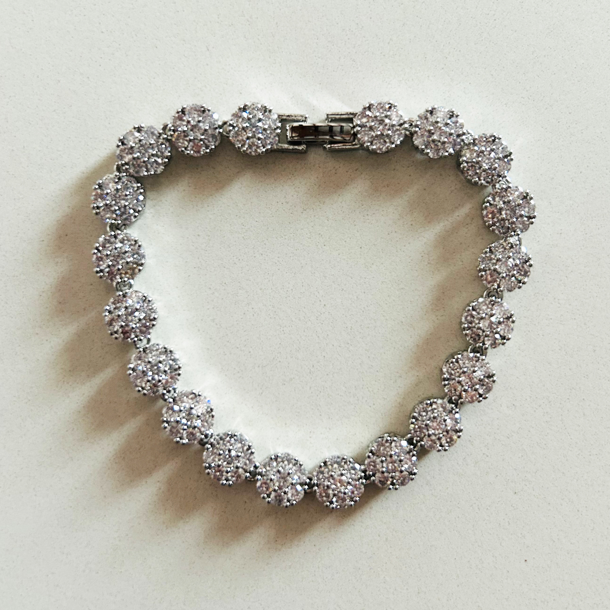 BRACCIALE TENNIS CON MODULI A FIORE IN PAVè DI ZIRCONIA CUBICA. OTTONE PLACCATO PLATINO.