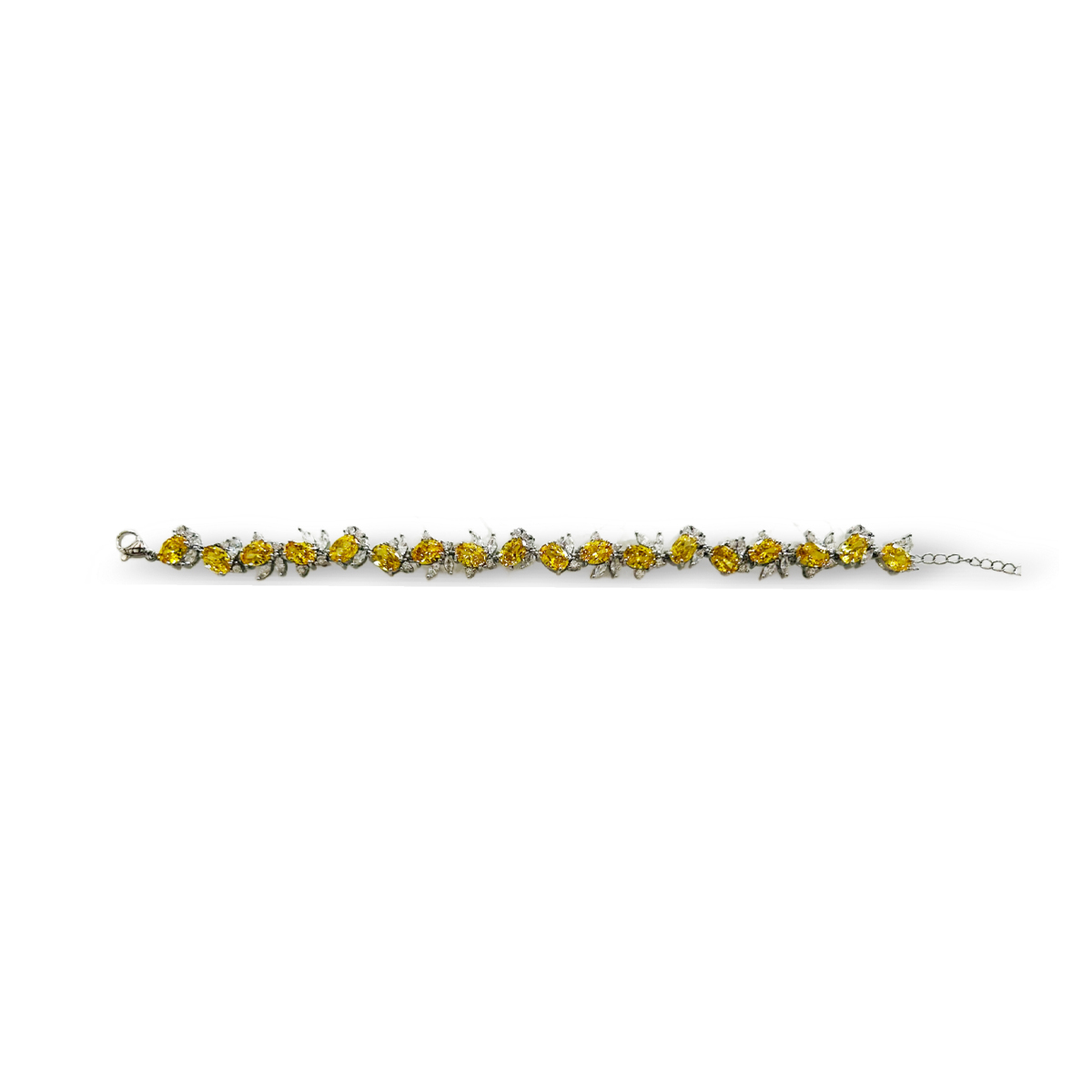 BRACCIALE CON BASE OTTONE E PIETRE OVALI GIALLE IN ZIRCONIA CUBICA, E PIETRE A NAVETTA IN ZIRCONIA CUBICA. LUNGHEZZA 19 cm. REGOLABILE.