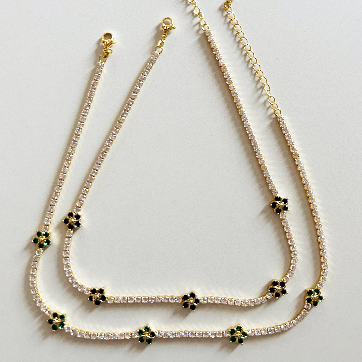 COLLANA TENNIS IN ZIRCONIA CUBICA CON FIORI COLORATI IN ZIRCONIA CUBICA.