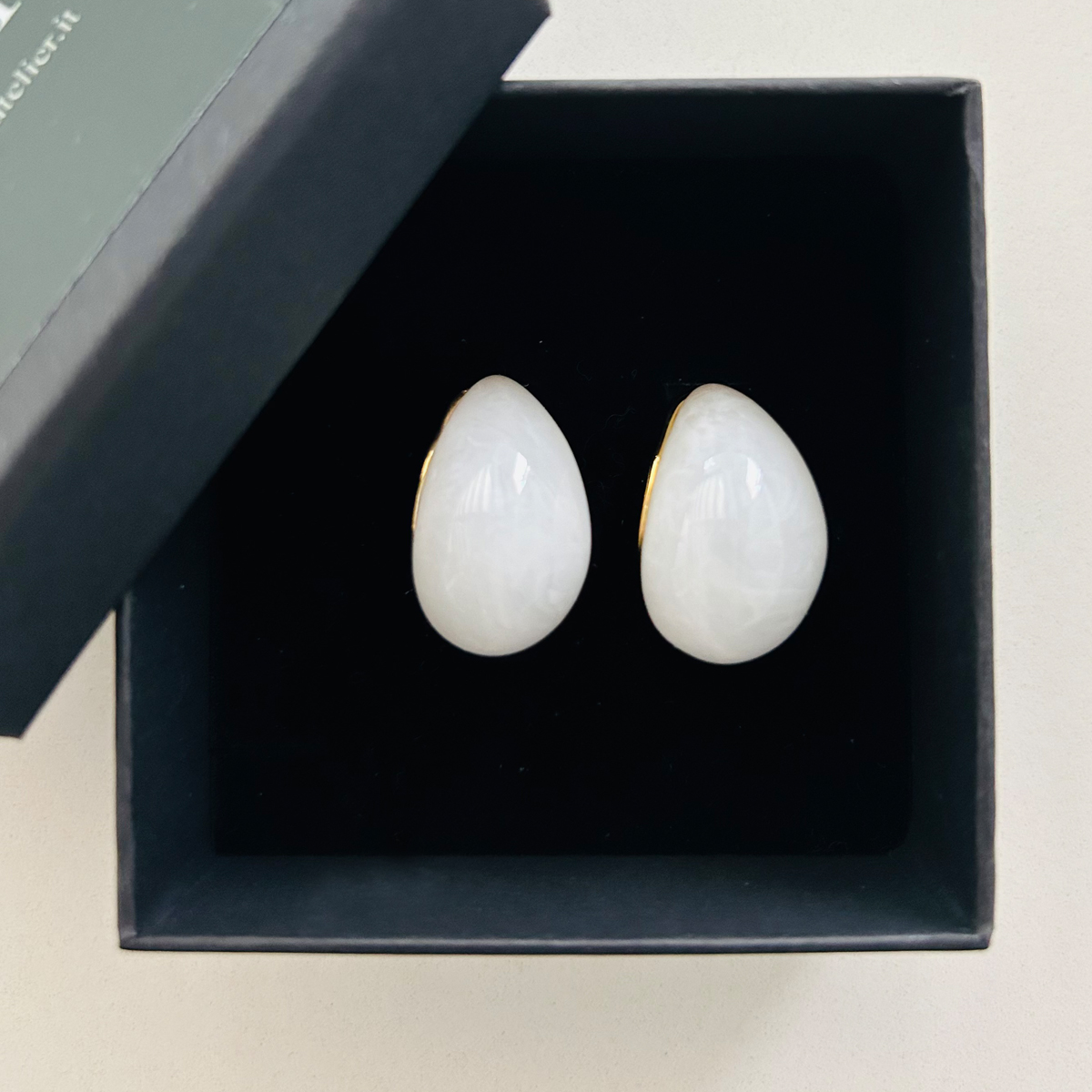 22,00 € ORECCHINI A GOCCIA IN ACCIAIO, CON UNA COPERTURA IN RESINA DALL’EFFETTO MADREPERLATO. BASE GOLD. LUNGHEZZA 25mm. Esaurito Category: ORECCHINI