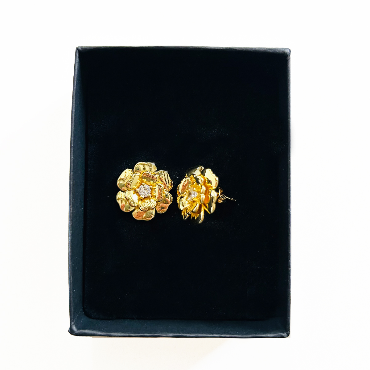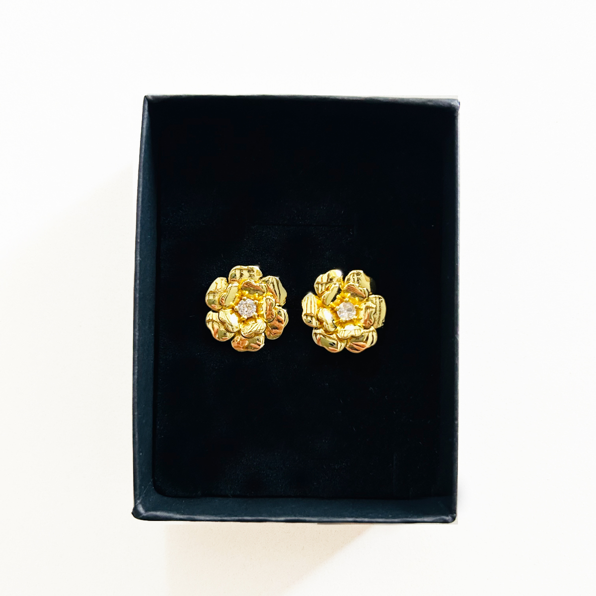 15,00 € ORECCHINI A BOTTONE A FORMA DI FIORE CON PIETRA CENTRALE A TAGLIO BRILLANTE IN ZIRCONIA CUBICA. OTTONE. DIMENSIONI: 20X20mm. Esaurito Category: ORECCHINI