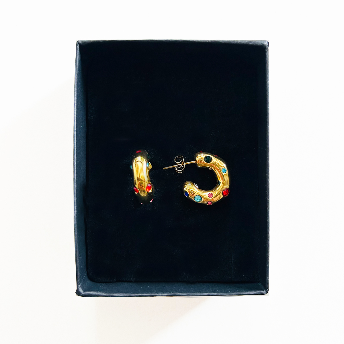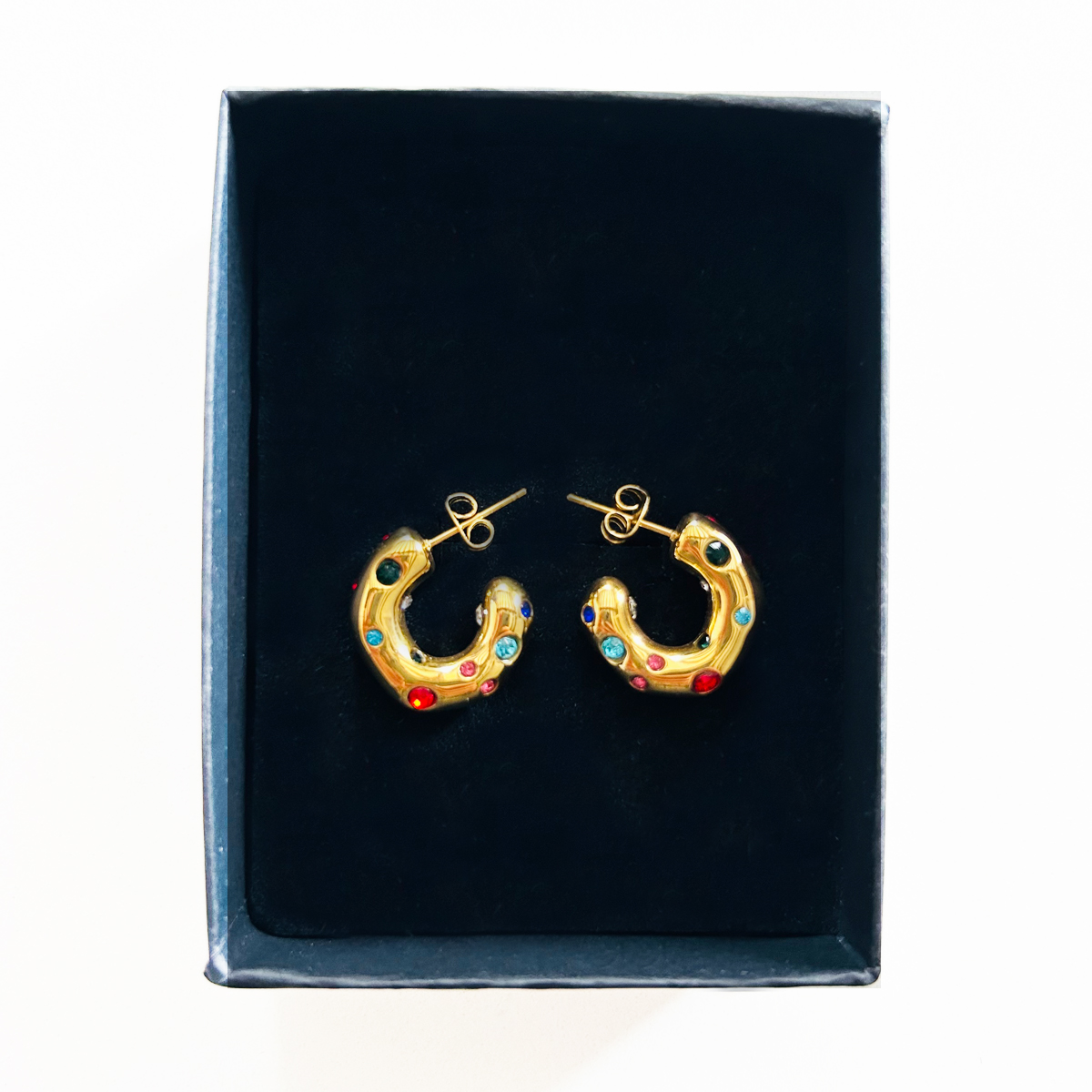30,50 € ORECCHINI A CERCHIO IN ACCIAIO INOSSIDABILE CON PIETRE COLORATE DI DIVERSE DIMENSIONI IN ZIRCONIA CUBICA. DIMENSIONI: 19X19mm. Esaurito Category: ORECCHINI