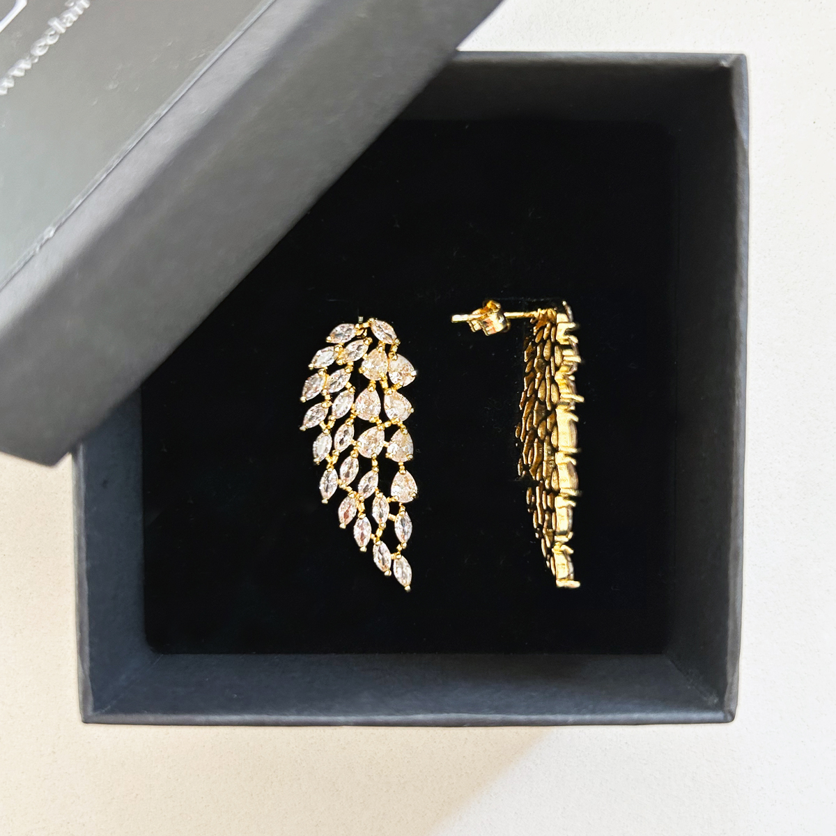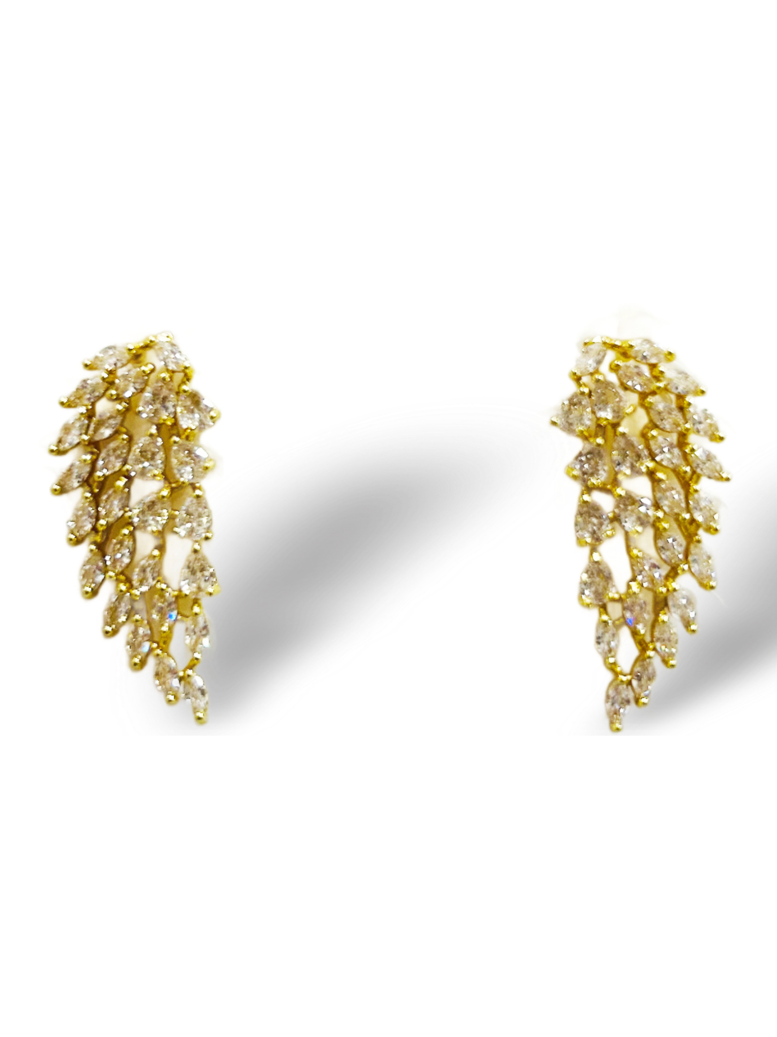 COPPIA DI ORECCHINI CON CASCATA DI PETALI A GOCCIA E A NAVETTA IN ZIRCONIA CUBICA CRYSTAL.