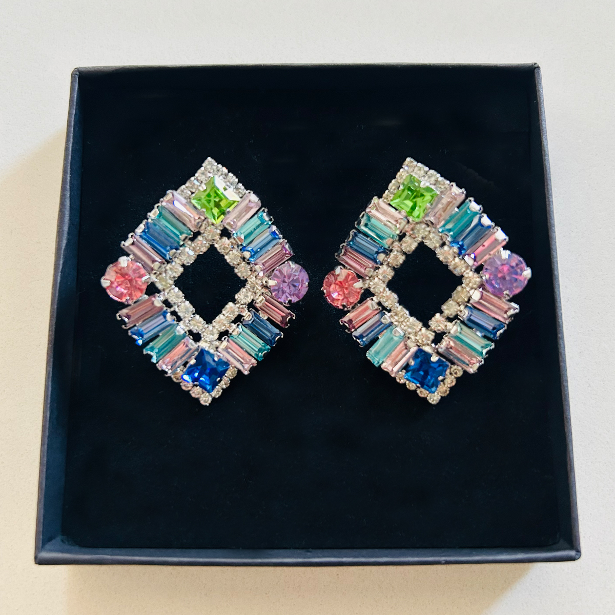 Valutato 5.00 su 5 su base di 1 recensioni (1 recensione del cliente) 33,50 € ORECCHINI A BOTTONE, CON CRISTALLI IN VETRO COLORATI. DIMENSIONE 42X35mm. Esaurito Category: ORECCHINI