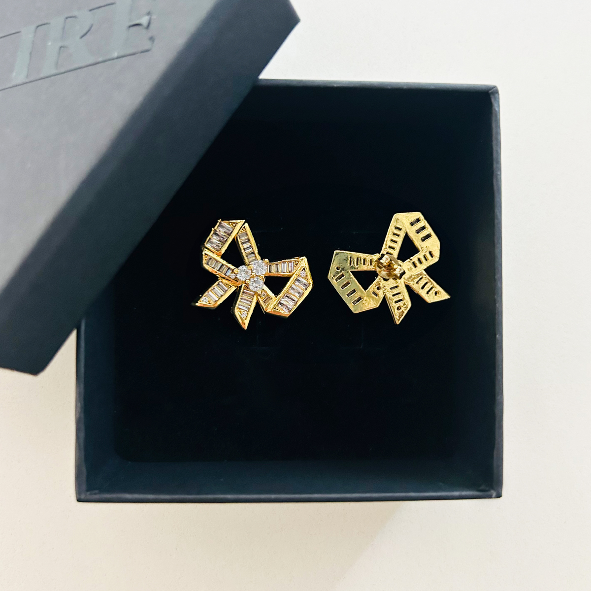 ORECCHINI IN OTTONE PLACCATO ORO 18K, CON ZIRCONI CUBICI CRYSTAL.