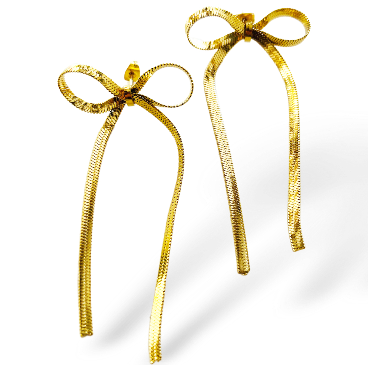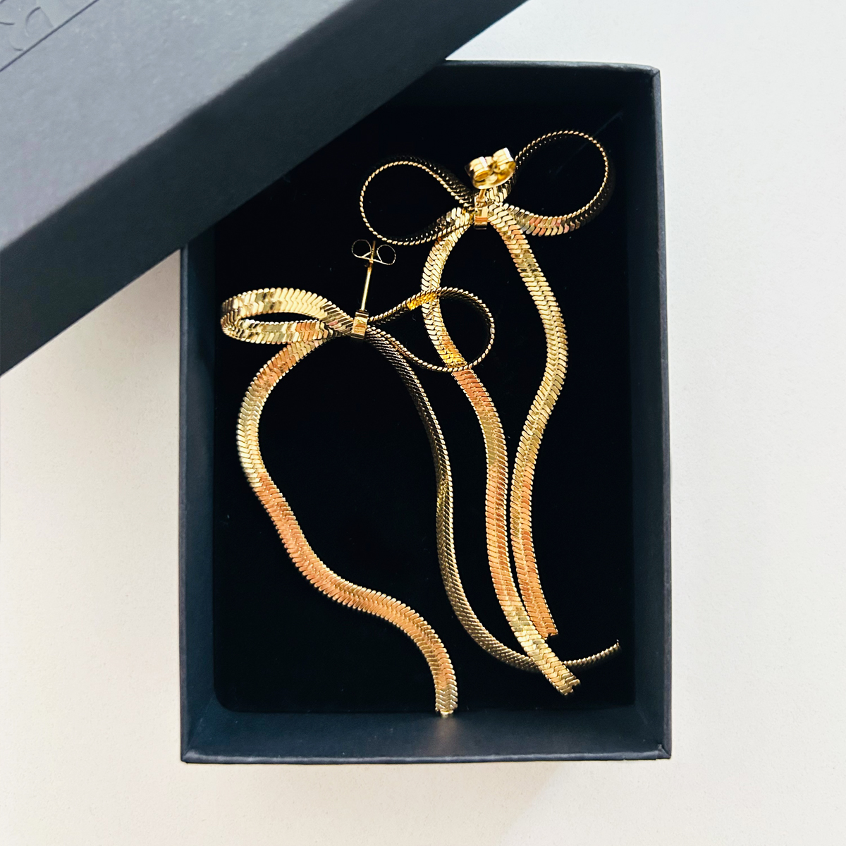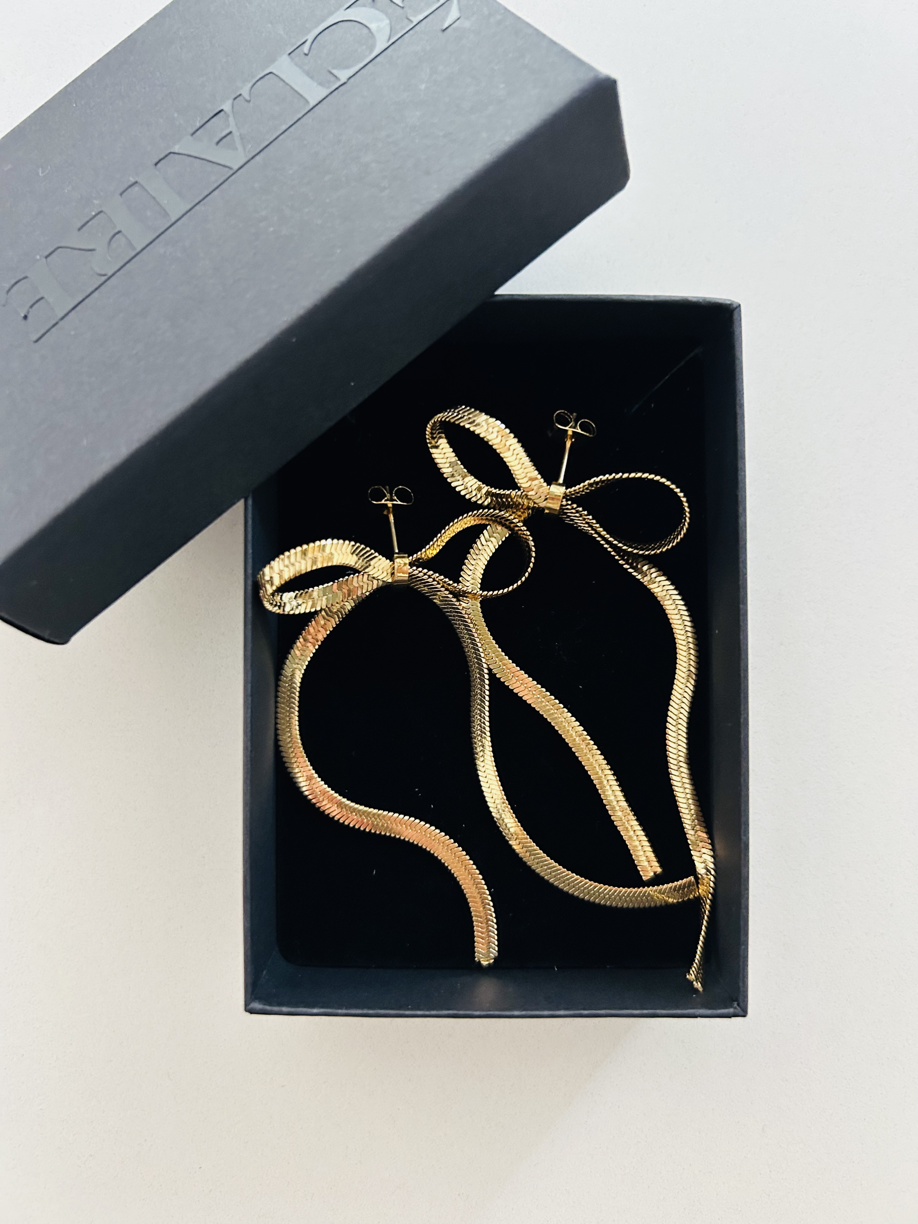 ORECCHINI IN ACCIAIO INOSSIDABILE 304, GOLD, CON MAGLIA A SERPENTE. 80X38MM.