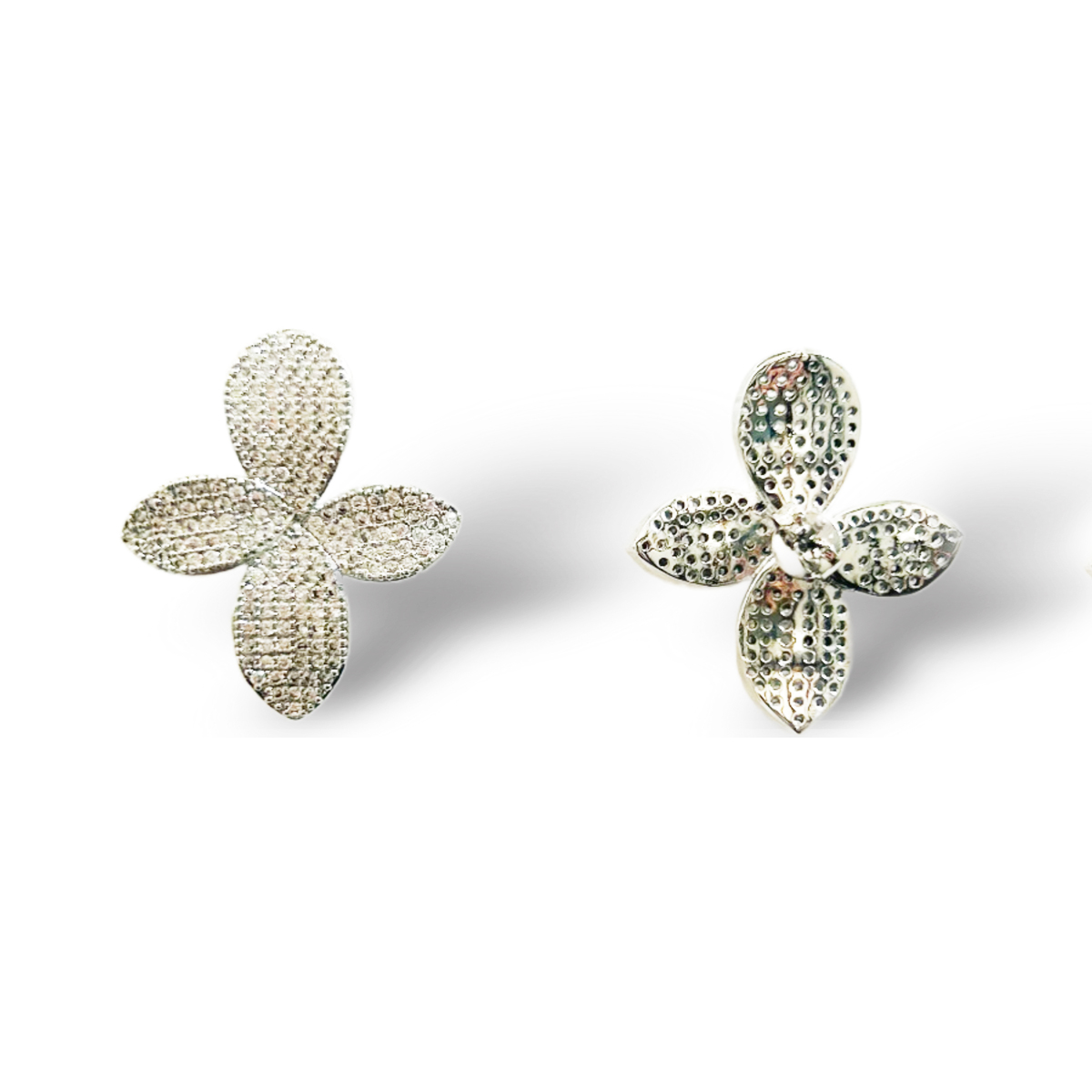 ORECCHINI A LOBO A FORMA DI FOGLIE IN PAVè DI ZIRCONIA CUBICA CRYSTAL.