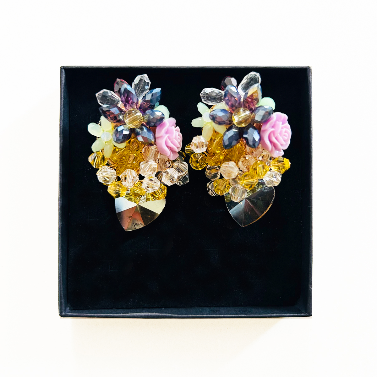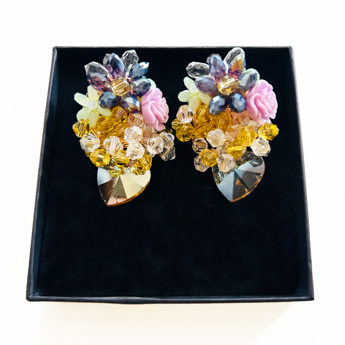 27,50 € ORECCHINI A BOTTONE CON FIORI, PERLINE E CUORE IN VETRO; ROSA LATERALE LILLA IN RESINA. DIMENSIONI: 38X65mm. Esaurito Category: ORECCHINI