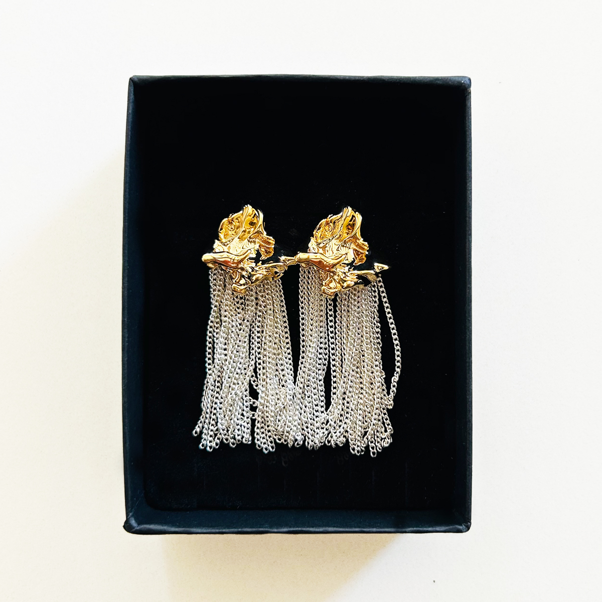29,50 € ORECCHINI A LOBO CON NAPPE PENDENTI A CONTRASTO. OTTONE PLACCATO ORO 18K. DIMENSIONI: 50X20mm. Esaurito Category: ORECCHINI