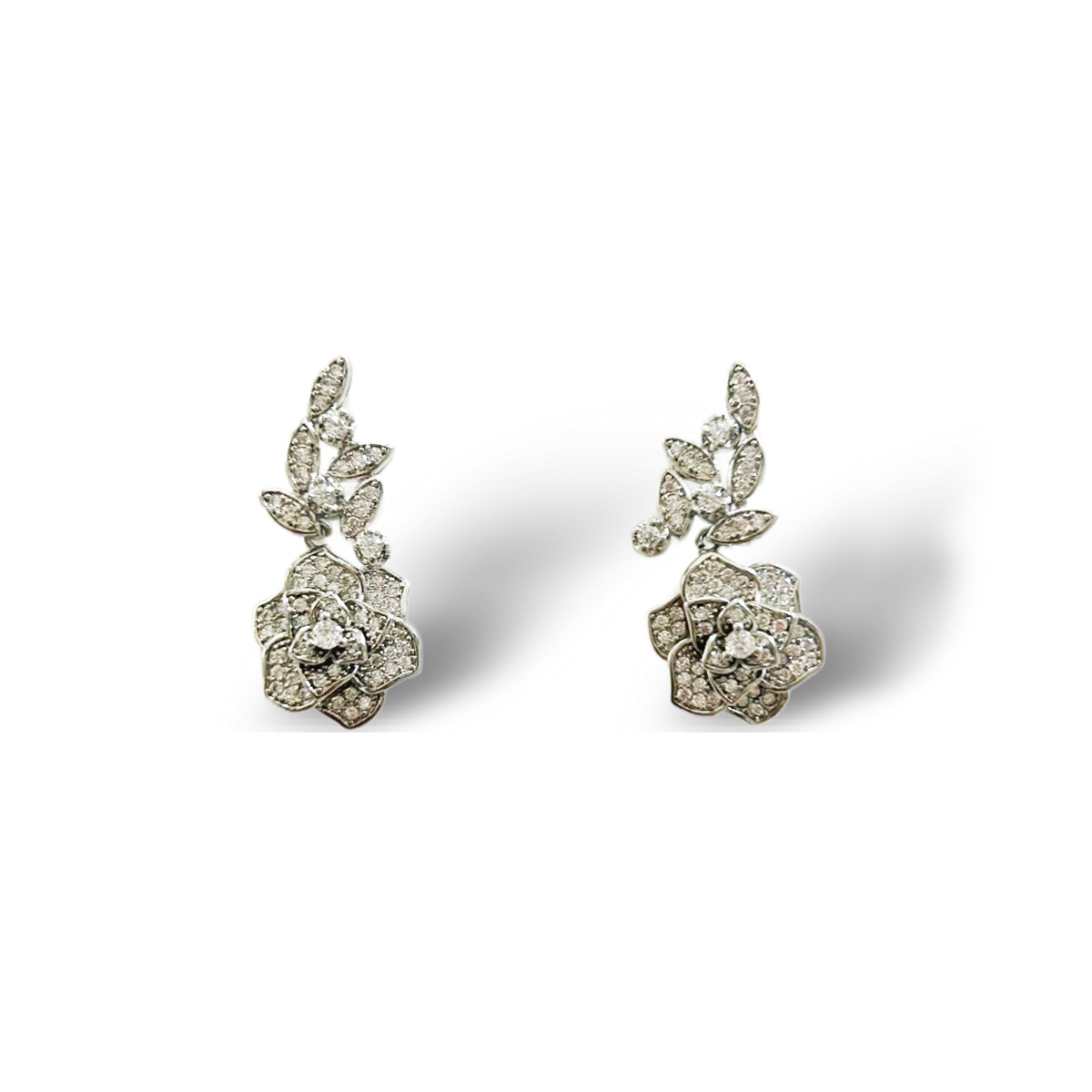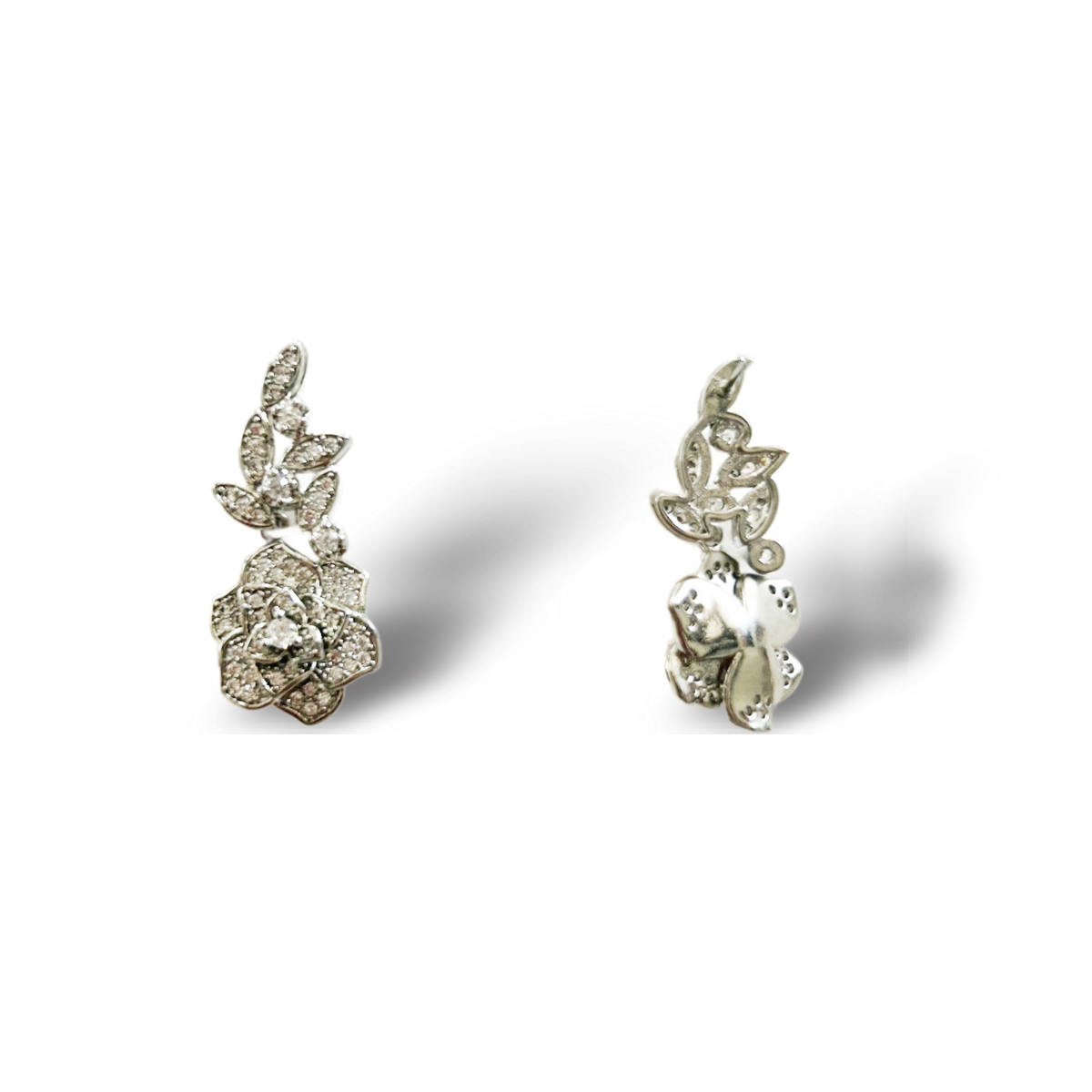 ORECCHINI IN OTTONE RODIATO A FORMA DI ROSE IN PAVè DI ZIRCONI CUBICA.